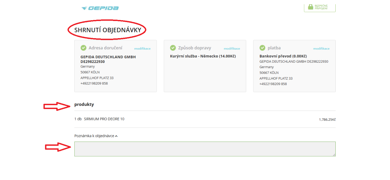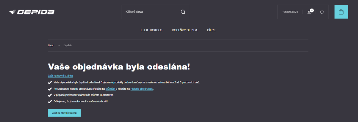 O stavu vaší objednávky vás budeme informovat e-mailem. Pokud neobdržíte e-mail s potvrzením objednávky během několika minut, zkontrolujte prosím složku spamu. Máte-li jakékoli další dotazy, kontaktujte nás e-mailem na adrese info@gepida.com.