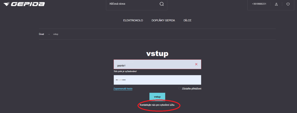 Pokud nemáte účet, klikněte prosím na možnost níže: „Kontaktujte nás pro vytvoření účtu.“