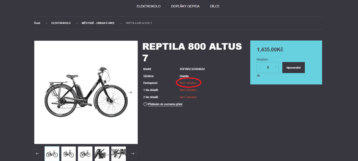 Pokud je vybraný produkt vyprodaný, můžete si vyžádat e-mailové upozornění o jeho dostupnosti.