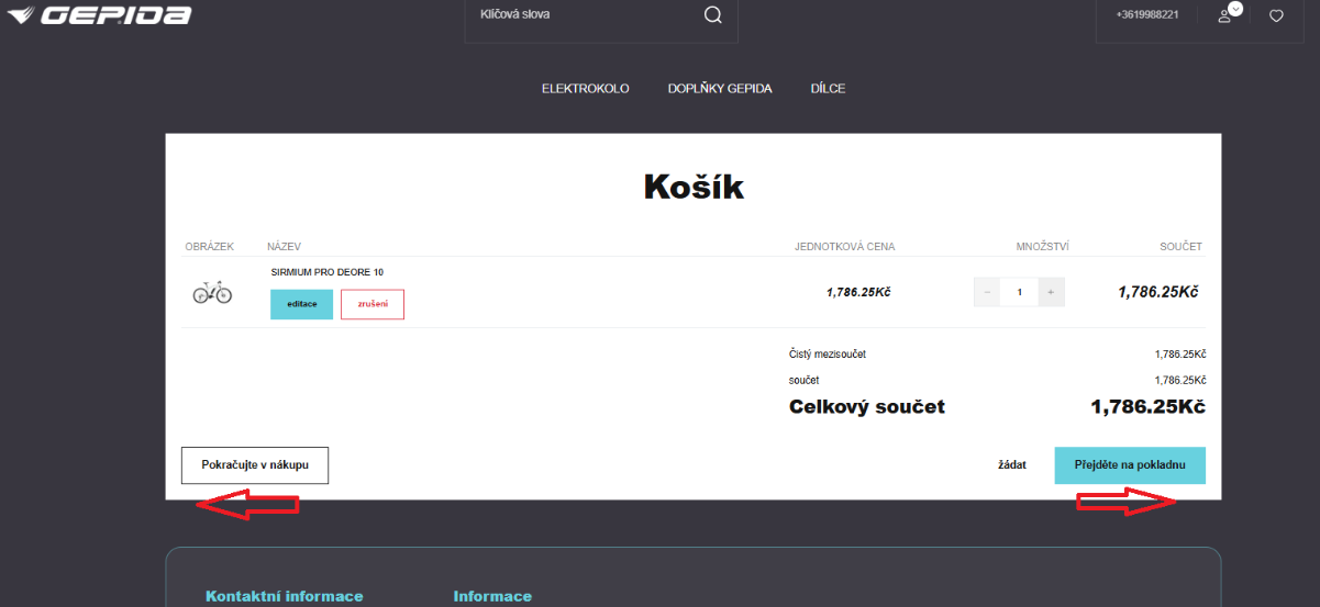 Na stránce KOŠÍK můžete stále „pokračovat v nakupování“ a upravit množství. Pokud máte v košíku všechny vybrané položky, klikněte na „Přejít k pokladně“.