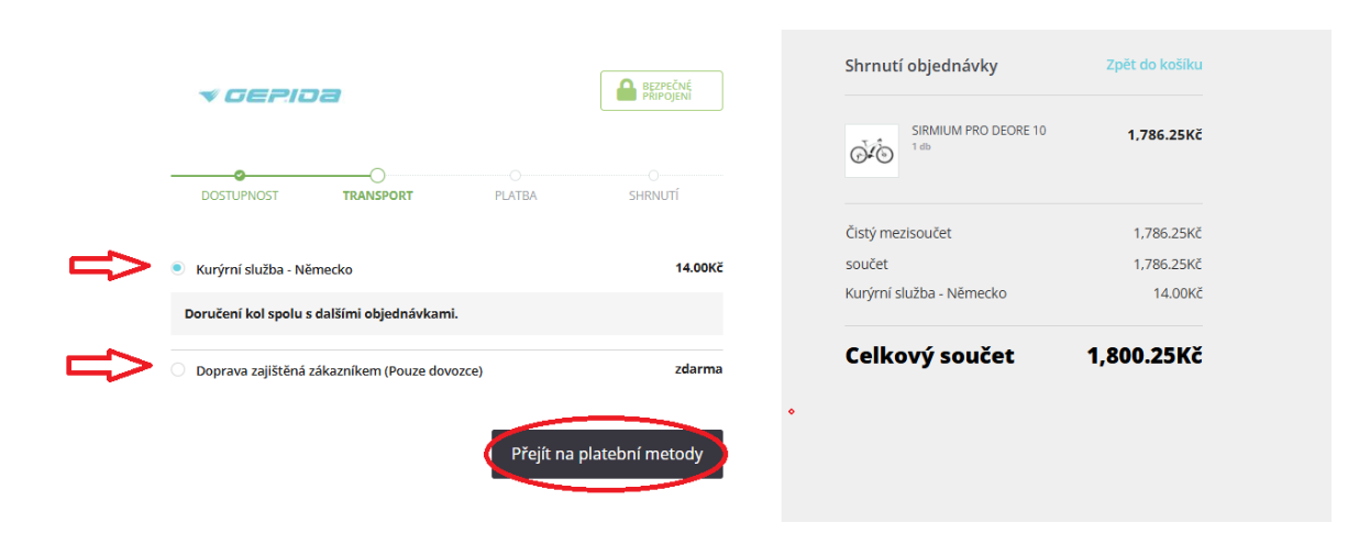 Máte možnost vybrat si preferovaný způsob doručení. Vyberte si podle svých potřeb a poté pokračujte na „způsoby platby“.